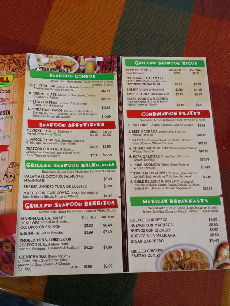 Fish or shrimp cooked in lime, mixed with tomatoes, red onions, cucumber, cilantro topped with avocado on a crispy tostada.